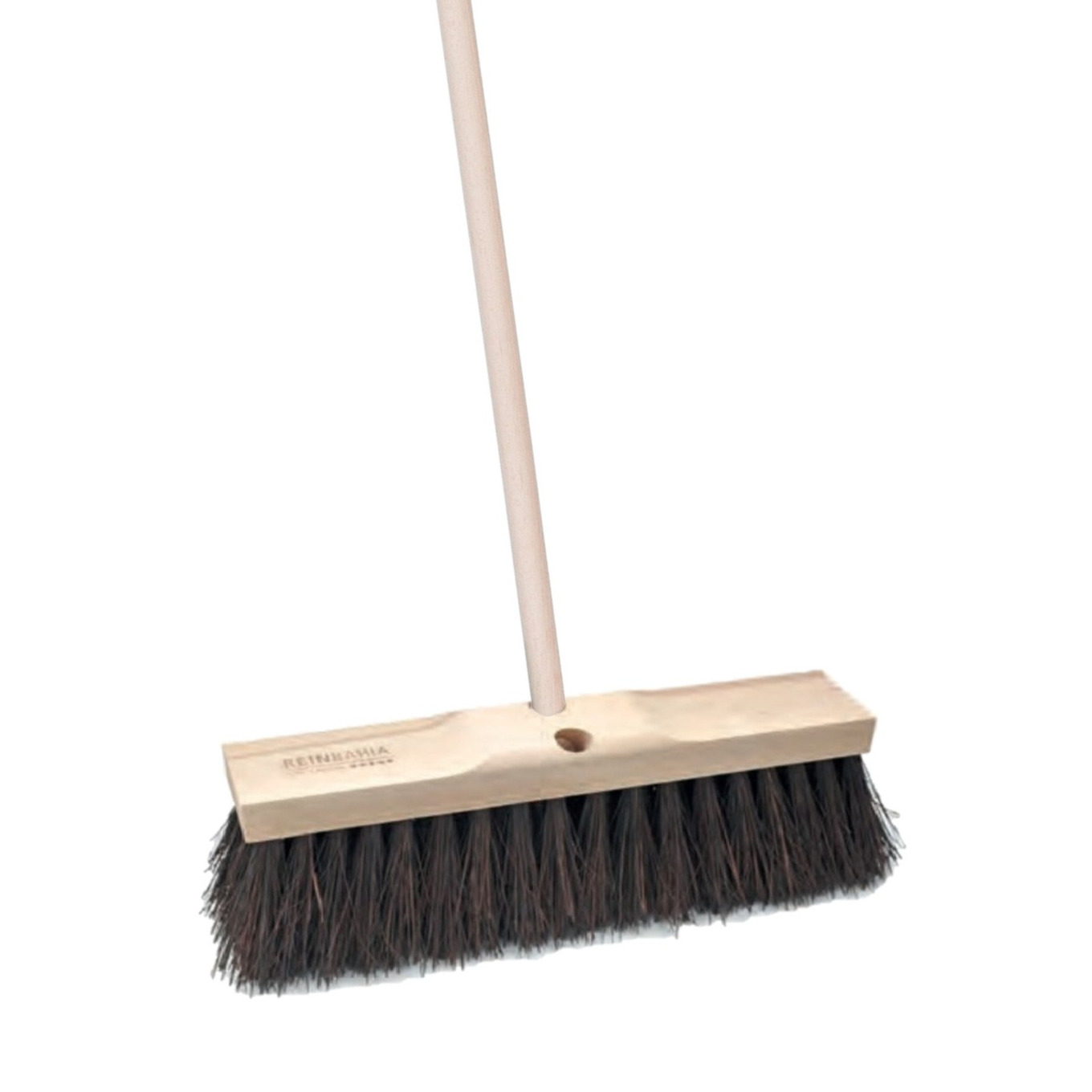 Sorex buiten straatbezemkop gemaakt van hout en natuurvezels in de kleur bruin. Met een houten steel van 130 cm. Deze straatbezem heeft een breedte formaat van 50 cm en is uitermate geschikt voor het wegvegen van fijn en grof, nat of droog vuil. Deze stevige borstelkop is uitgerust met 2 standaard klem openingen. Deze borstel is geschikt voor gebruik buiten voor de meeste oppervlakken, o.a. tegels, hout, grint, maar ook voor werkplaatsen of schuren.