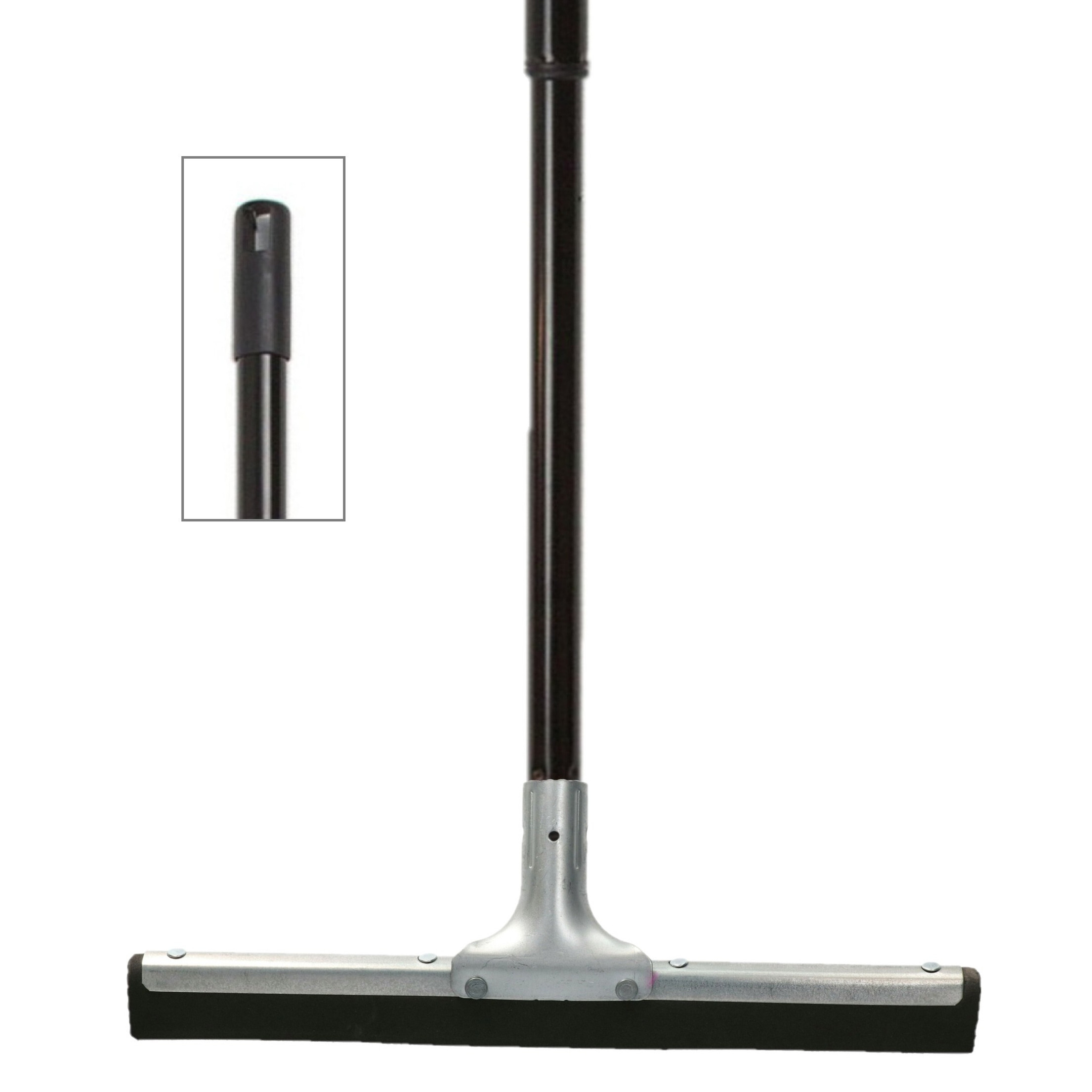 *Vloertrekker / douchetrekker voor water, gemaakt van metaal en natuurrubber met een breedte van 34 cm*, met een telescoop kunststof steel in het zwart van 80 tot 130 cm met klemuiteinde. Deze vloertrekker is geschikt voor het droog maken/trekken van tegels/vloer na het schrobben/schoonmaken, of om teveel water weg te vegen. De trekker bestaat uit een gegalvaniseerd metalen frame met daarin een zwart natuurrubber. Breedte van de kop: 34 cm. Vloertrekker / douchetrekker / waterbezem. , Dit artikel bestaat uit:, 1x Universele telescoopsteel – metaal – zwart – 80-130 cm – telescoopstelen, 1x Vloertrekker/douchetrekker voor water – metaal/natuurrubber – breedte 34 cm