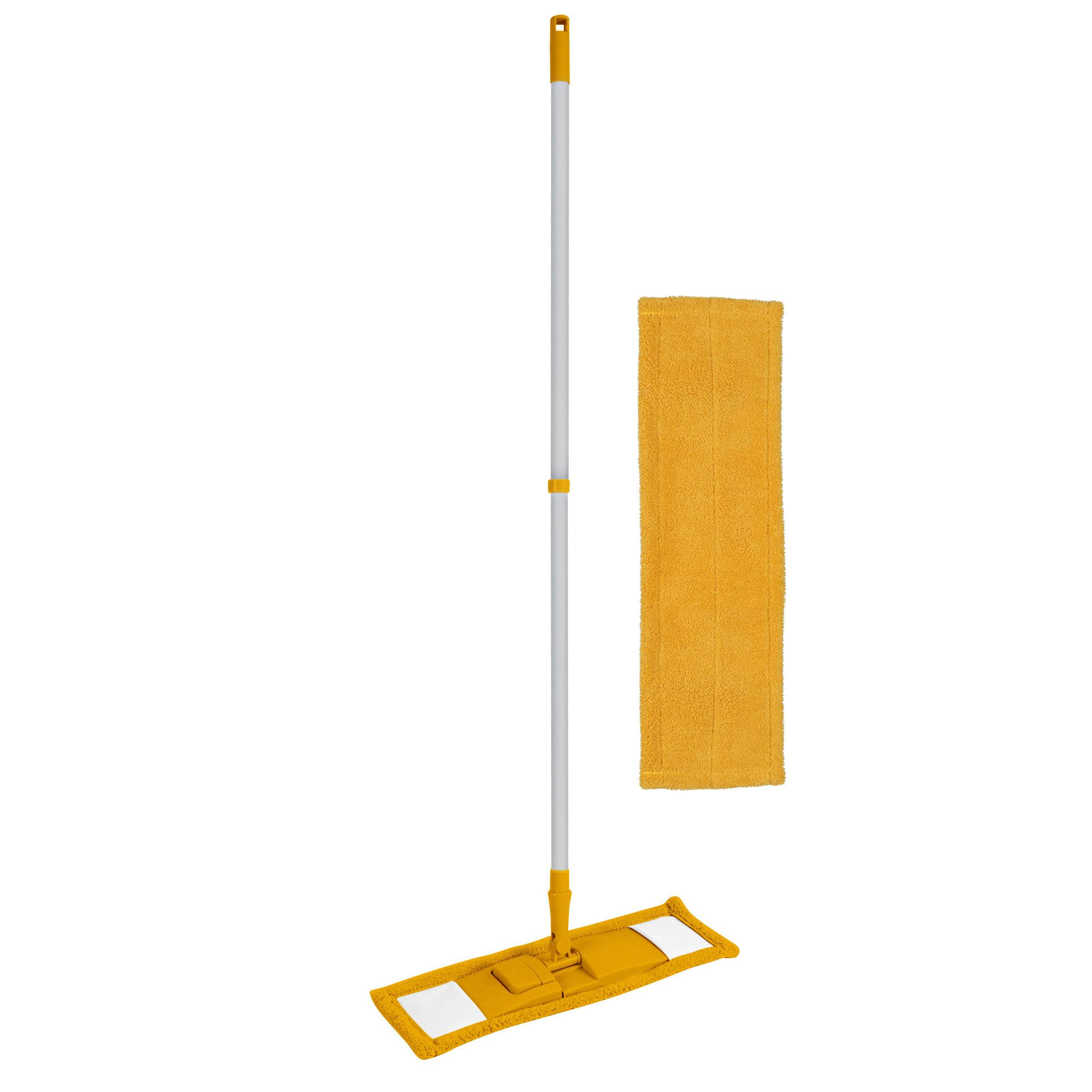 De Urban Living Vloerwisser met 2x microvezel doek/dweil in de kleur geel is een doeltreffend schoonmaakinstrument dat ontworpen is voor effectieve vloerreiniging. De microvezel constructie van de wisser staat garant voor een grondige verwijdering van stof en vuil, waardoor je vloeren schoon en glanzend blijven. De meegeleverde steel zorgt voor ergonomisch gebruik, terwijl de verstelbare functie je in staat stelt de lengte aan te passen aan jouw voorkeuren. Met de toevoeging van een vloertrekker wordt niet alleen vuil verwijderd, maar wordt ook water efficient weggeveegd, waardoor je vloeren snel drogen. Deze vloerwisser is een handig en veelzijdig hulpmiddel om je leefruimte schoon en fris te houden.