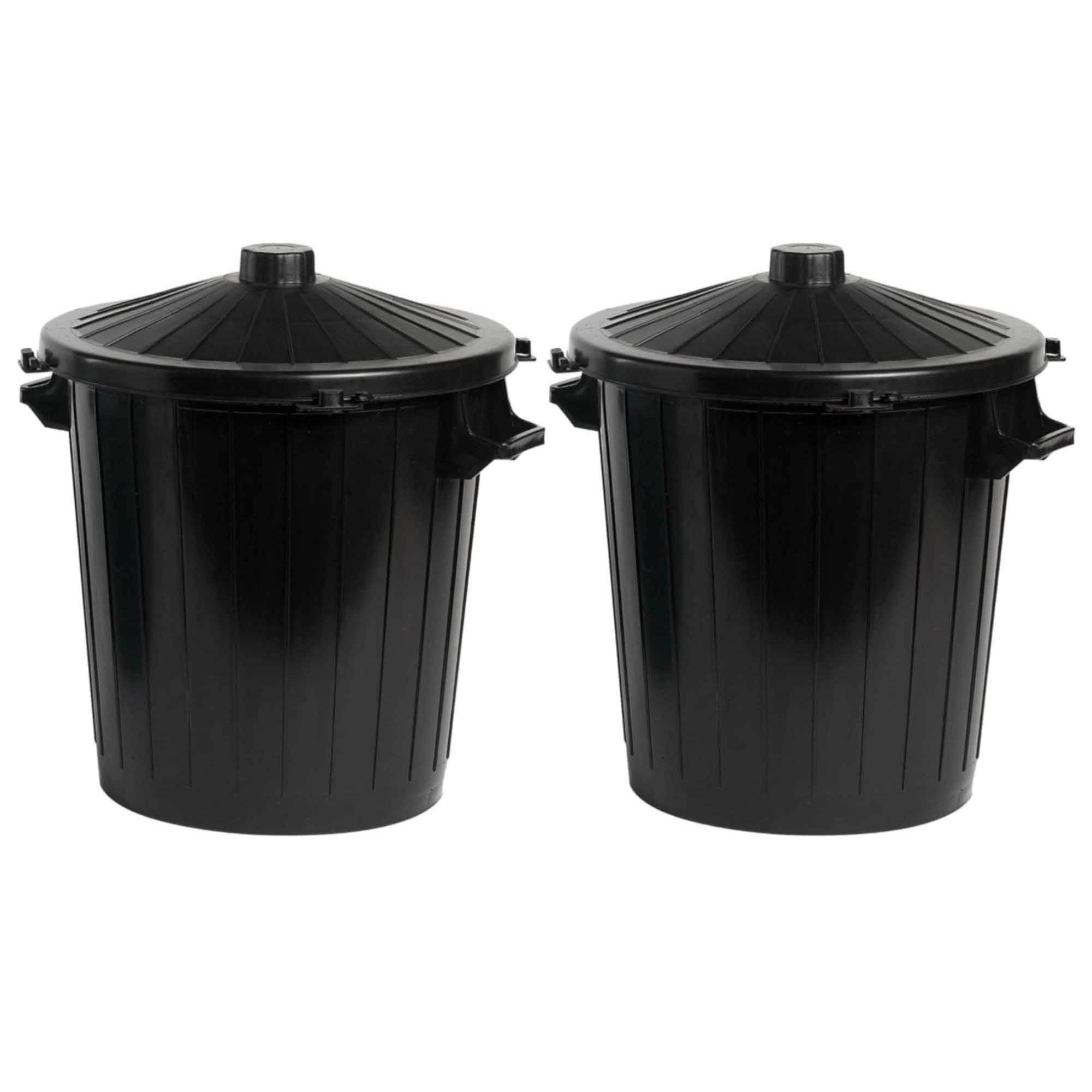 Vuilnisbak/prullenbak emmer met deksel – 2x – 80 liter – Zwart – 51 x 65 cm – kunststof