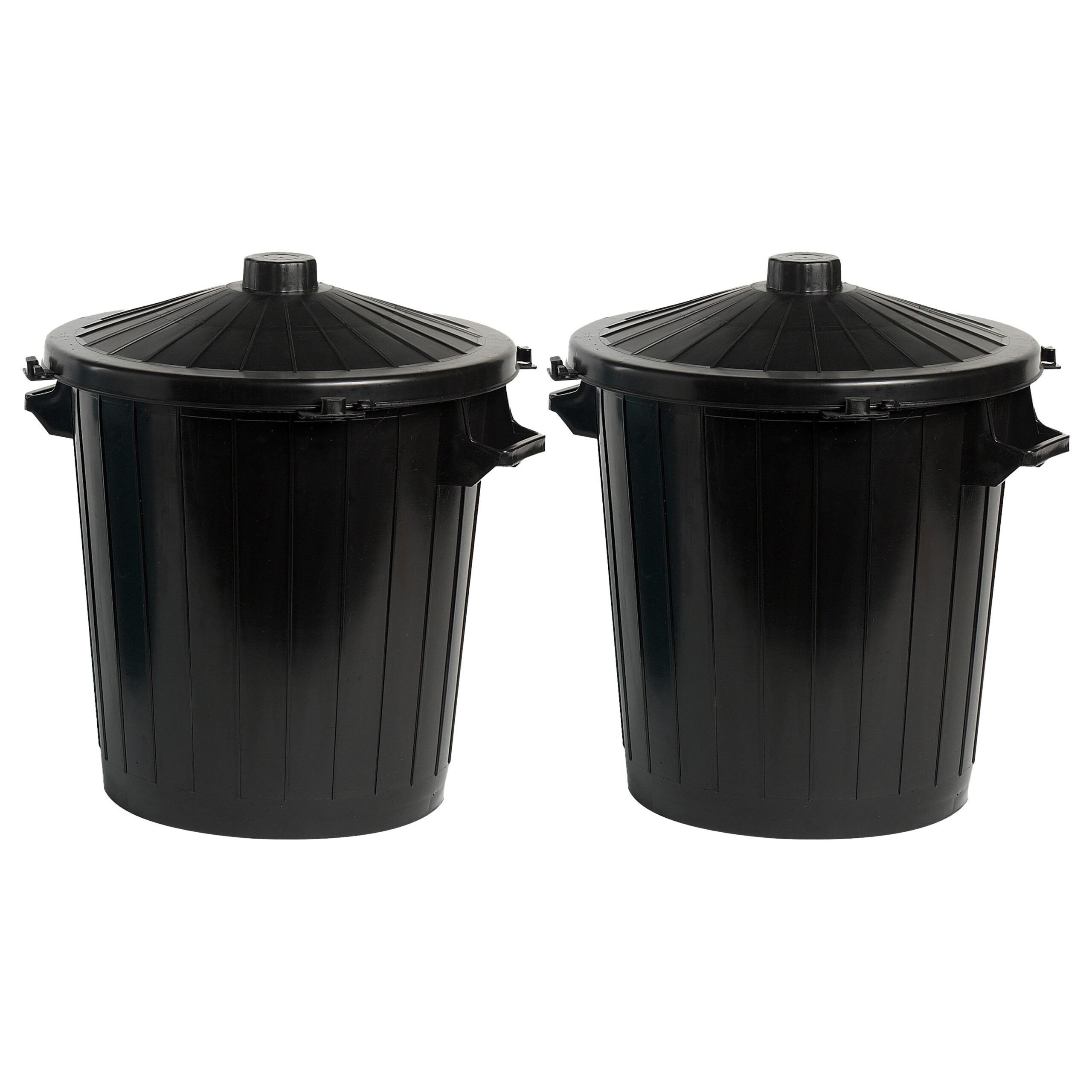 2x Cosy & Trendy Wasmand met deksel met inhoud 50 liter in de kleur zwart. Ronde grote wasmand met deksel. Materiaal: kunststof/plastic. Formaat: ca diameter 49 cm, hoogte 54 cm. Inhoud: 50 liter.